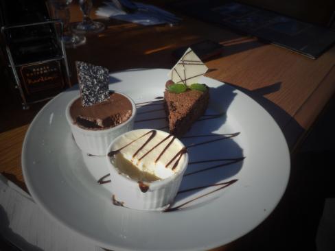 De postre pedí una fantasia de chocolate que traía un mousse de chocolate bitter y uno de chocolate blanco mas un trozo de brownie, que estaba un poquito seco, pero en general estaba todo mortal!.