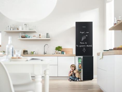 “Blackboard edition” es un refrigerador único que ofrece una superficie igual a un pizarrón que invita a desplegar la creatividad y también es muy práctico porque permite dejar mensajes o anotar información relevante para los que realmente nos importan. En la puerta se puede escribir con tiza convencional o con lápices de tiza líquida y es muy fácil de limpiar. Con esta innovación se puede sacar el máximo de partido a este electrodoméstico como centro de comunicaciones: por ejemplo, en una reunión familiar, se puede dejar a los más pequeños entretenidos frente al Blackboard dando rienda suelta a su creatividad, mientras los adultos supervisan y preparan la comida. El “Blackboard edition” tiene una capacidad de 361 litros.