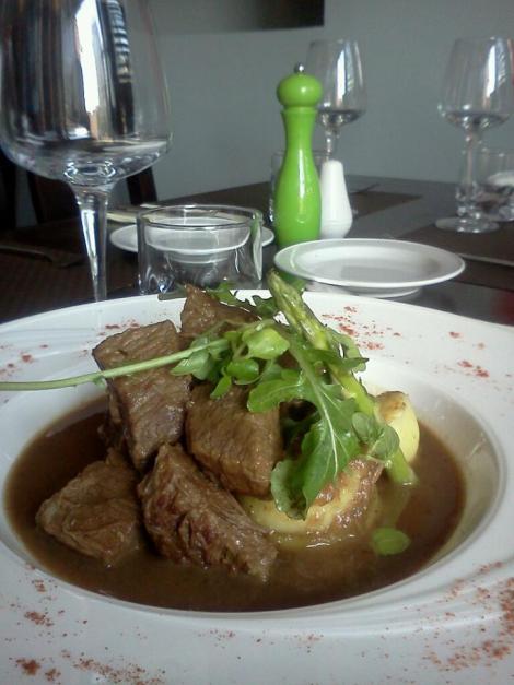 Seguimos con una clasica Carbonnades Flamandes con Papas que sinceramente para comer una igual tienes que estar en Bruxelles. Gran plato, con ese saborcillo dulzon a frutos rojos que tanto me gusta y la carne blanda, muy blanda. Me la comí con cuchara.