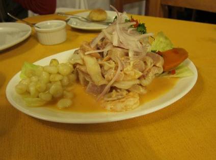 A penas nos sentamos, pedimos dos sours peruanos ($2.900 c/u) y un cebiche Mixto ($5.800), ambas cosas muy buenas, como siempre