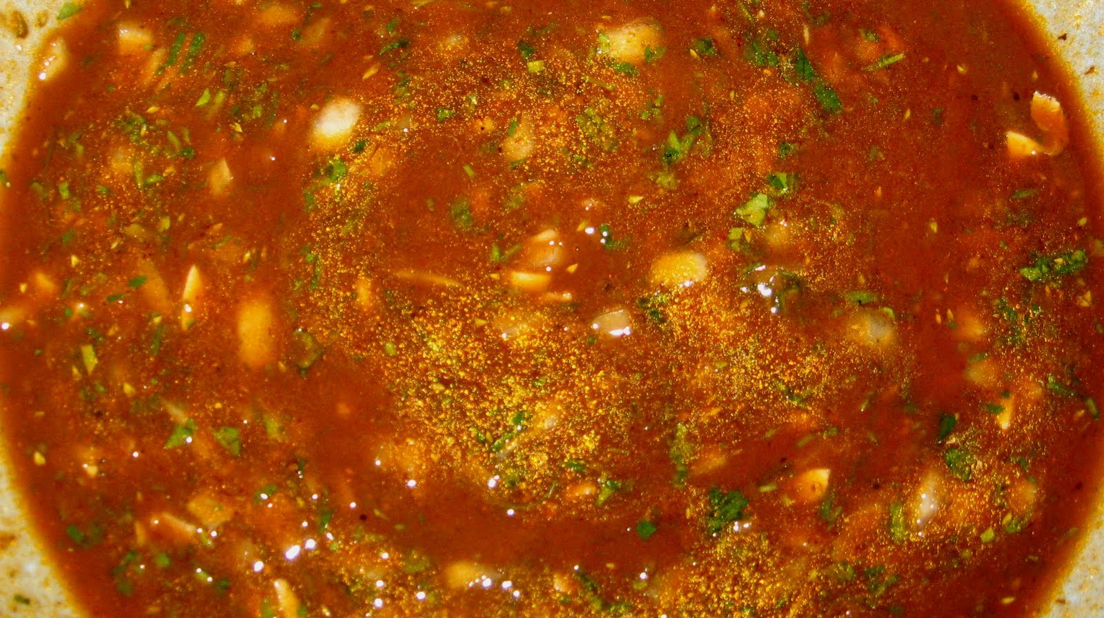 Todo comienza con el sabor picante del chileno (picante en el buen sentido) ese picante que no quema, un picante tímido, así como nosotros. Este sabor característico lo encontramos en una gran cantidad de preparaciones, es sabor a picadas, a arrollado huaso y a pebre, una balanceada mezcla de ají en pasta, de ese que se vende en bolsitas de plástico y que rara vez tienen marca, que lo encontramos en la tienda de abarrotes de Doña Juanita que queda en la esquina o podemos encontrar connotados productores de pasta de ají como Jano y JB, compramos directamente en el supermercado. Luego sumamos a la vigorosa mezcla, vinagre blanco, nuevamente destaco la dudosa reputación del vinagre, seguimos con sal, orégano, pimienta, cilantro, un poco de vino blanco, de ese que se usamos para hacer ponche de duraznos o melón con vino, finalmente terminamos con ajo y cebollita.