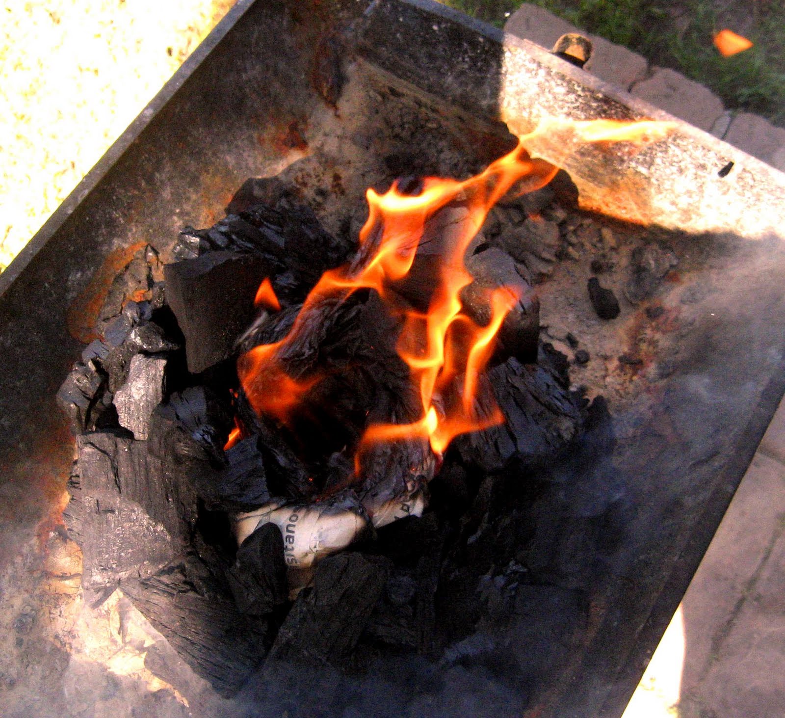 Para tal efecto usaremos la ancestral técnica, coloquialmente llamada, “el maricón”, esta forma de hacer fuego es prácticamente perfecta, para aquellos amateur en el tema de la parrillada resulta especialmente cómoda. Primero realizaremos pliegues con papel de diario, luego anudaremos el papel alrededor de una botella de vino. Después colocamos la botella envuelta en papel sobre la parrilla y apilamos el carbón alrededor de ésta, sacamos la botella deslizándola, para que los papeles se mantengan al centro y formen una chimenea, en sectores populares la denominarían “hueco”, finalmente metemos un fósforo prendido dentro de la chimenea, los papeles comenzarán a prenderse, y el tiraje producido por la forma de la pira logrará prender los carbones sin necesidad de intervención humana, nada de sopladores ni productos químicos. Ahora, sólo es cuestión de tiempo, el fuego se prende sólo.
