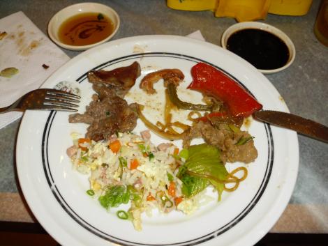 Habían hasta guatitas! para mezclar con aceite de sésamo, como nos decía el mozo (lo blanco del plato), también gyosas y verduras salteadas en soya