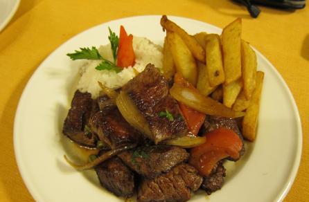 A la hora del fondo, sin dudarlo pedí un lomo saltado ($6.000), y Fer una Reineta Chorrillana ($5.200), ambas cosas acompañada de una Cuzqeña y una Coca Light.