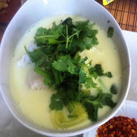 La segunda vez que fui probé la otra sopa que estaba en la carta: la sopa Tom Kha ($4.900), y un pescado al curry. Esta vez, no me fue tan bien, el pescado estaba seco, y no estaba incorporado al curry, es decir el curry te lo traían aparte (no era lo que me imaginaba). La sopa, al igual que la que había probado la primera vez, impresionante!.