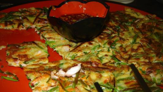 Medios perdidos con la carta se nos acerca una garzona bastante amable pero desganada que nos explicó rápidamente los platos y nos sugirió una tortilla de calamares y cebollín (el nombre en coreano es muy difícil de recordar), estaba exquisita, realmente muy rica.